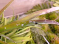 An integrated pest management plan avoids restricted use pesticides in favor of good cultural practices and natural options. Rotating crops in the chambers and keeping things clean goes a long way, along with biological controls like parasitoid wasps, predatory nematodes and mites that target aphids, B. thuringiensis spores, lacewings, and insecticidal soap. Staff work together to brainstorm complex, well thought out systems. For example, they keep a cotton plant with the sole purpose of housing unwanted aphids to feed the wasp population so that the wasps can fly around and find the destructive aphids on other plants and eliminate them. Wolf wants to improve existing conditions and offer more services such as crossing plant varieties to create new strains, and provide education on best practices for harvesting and maintaining specimens. Staff has already experimented to create new varieties of aloe plants.