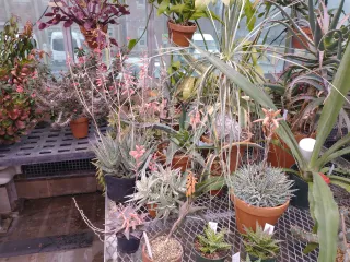 Wolf is learning a lot about growth chambers, rooms in which plants are grown under tightly controlled conditions, stating that each machine has its own personality. Some chambers are big complainers, some are stubborn, some are workhorses with a great work ethic. Chamber crops include Arabidopsis, tomato, and brassica. Greenhouse crops include corn, clover, rice, Plantago, and grasses. The facility houses an arid plant collection including cacti and succulents, along with a variety of plants that are rare, interesting and fun: pineapple, coffee, cacao, the touch sensitive plant mimosa, carnivorous plants, aloes, orchids, pitcher plants and air plants.