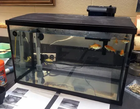 If you ever visit the greenhouse in the Jeanette Goldfarb Plant Growth Facility, you’ve probably seen a goldfish that was way too big for its bowl. Funkii is the last of five feeder goldfish gifted to the greenhouse by former postdoc Junya Zhang. On New Year’s Day, 2022, Junya messaged former greenhouse manager Mike Dyer asking if he could leave his tank of goldfish in greenhouse custody. Junya was moving across the country for a new position and unable to take the fish with him, a real “leave the baby at the firehouse” kind of moment.