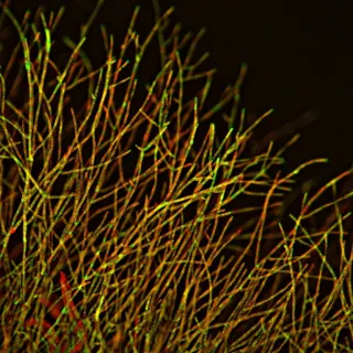 In 2018, faculty members Ram Dixit and Erik Herzog, along with Dianne, applied for a National Science Foundation Major Research instrumentation grant that resulted in the purchase of the Leica Sp8 DIVE Multiphoton confocal microscope. This instrument greatly increases the depth of imaging of fluorescently labelled samples; allowing for deep imaging of live and fixed animal brains as well as providing a suite of new technologies to probe living, fixed, labelled, and unlabelled samples at high resolution with very low phototoxity.